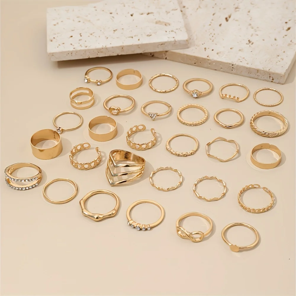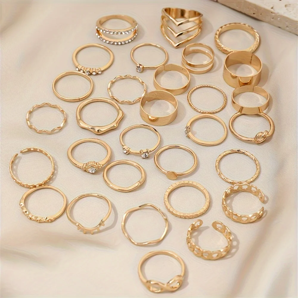 30pcs/set Elegant Stackable Rings Set With Shiny Rhinestone Inlaid, Fashion Infinity Knot Design, Vacation Style Perfect Stylish