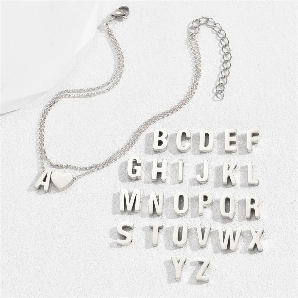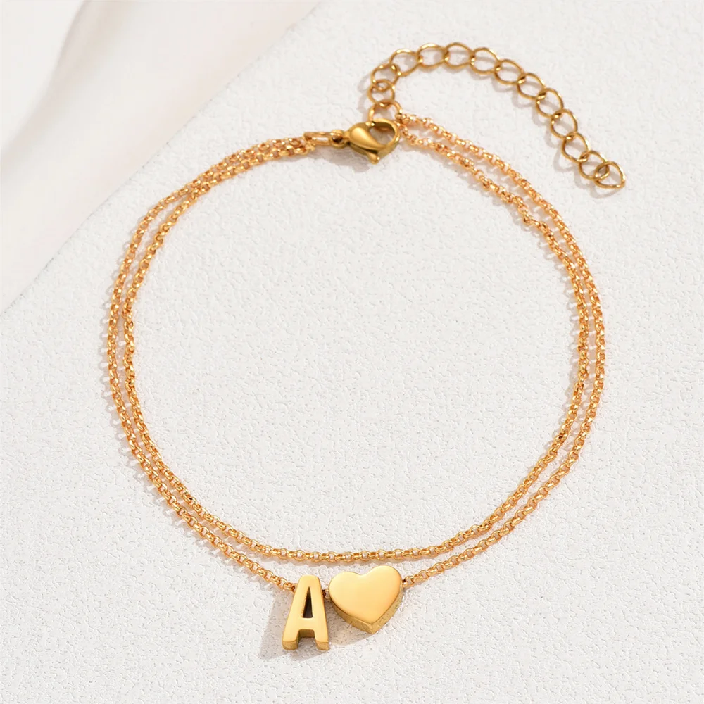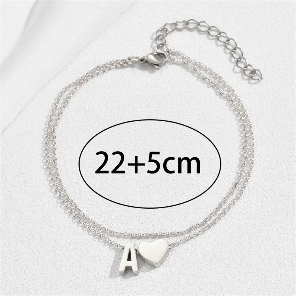 Boho 26 Letters A-Z Stainless Steel Chain Anklets For Women Simple Heart Ankle Bracelet Anklet Beach Jewelry Summer Accessories