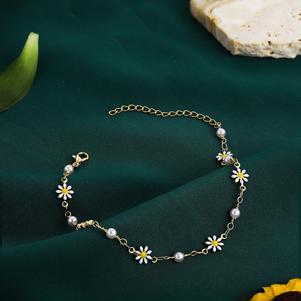 Elegant Daisy Flower Anklet with Handmade Pearl Chain Anklets for Women Summer Beach Sandals Accessories Bracelet on The Leg