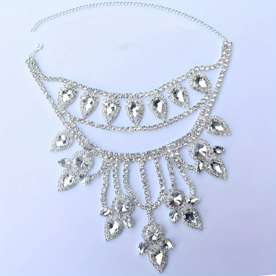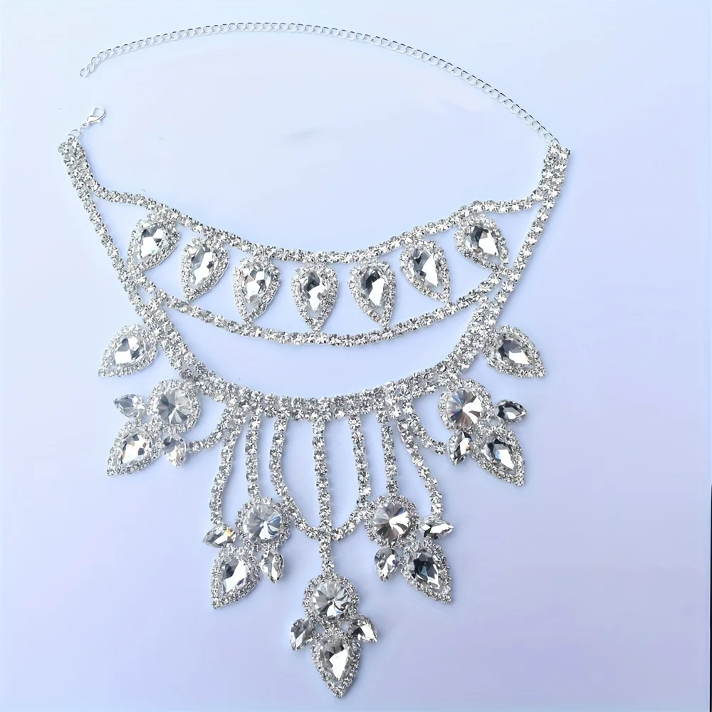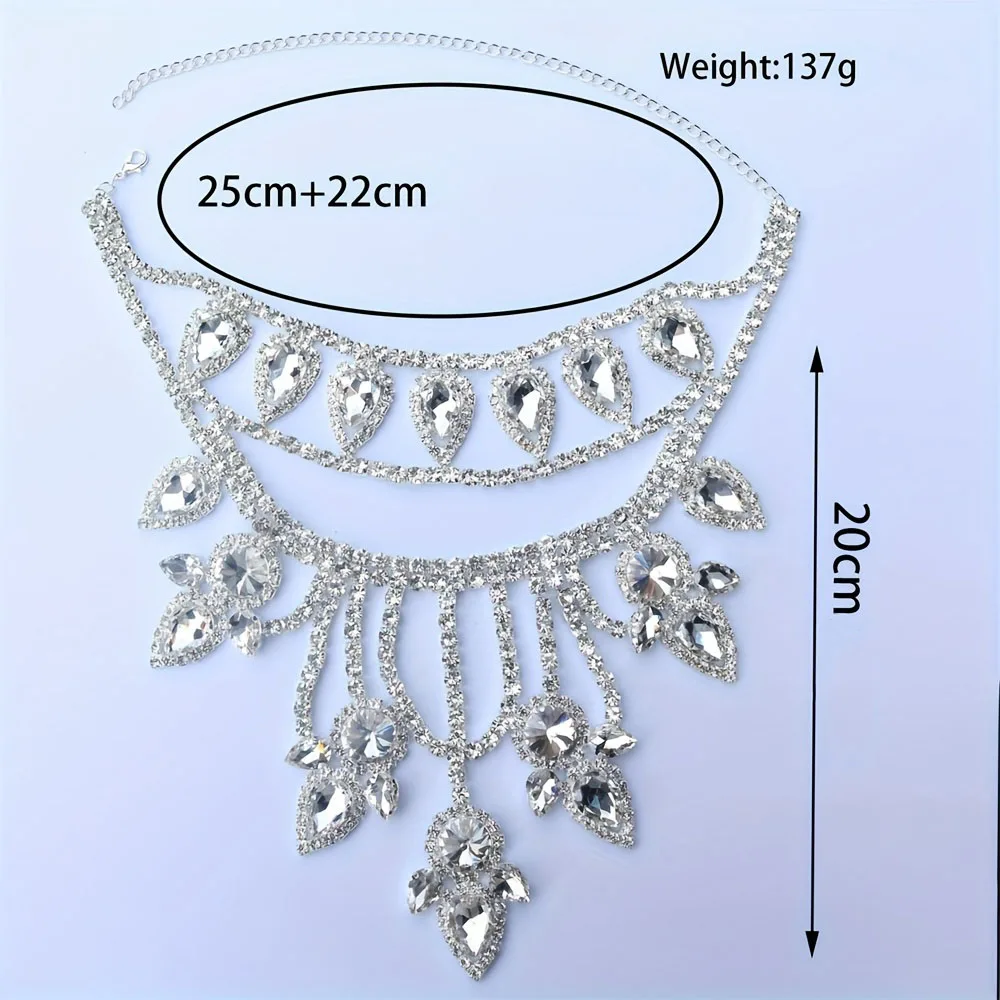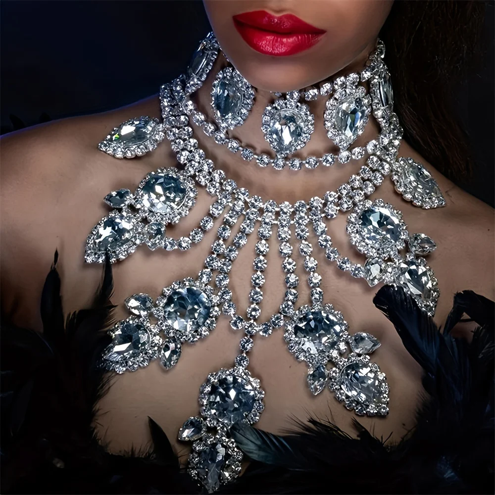 Exaggerated Super Sparkling Large Rhinestone Necklace Jewelry Exquisite Luxury Wedding Party Necklace Crystal Jewelry Body