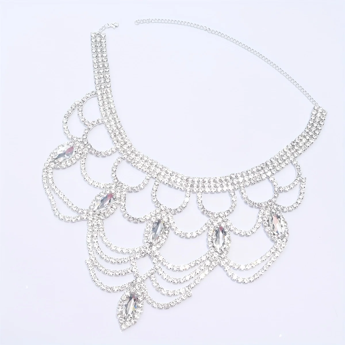 Fashion Shiny Rhinestone Necklace Jewelry Women’s Exquisite Luxury Bridal Wedding Party Jewelry Necklace Wearing Accessories