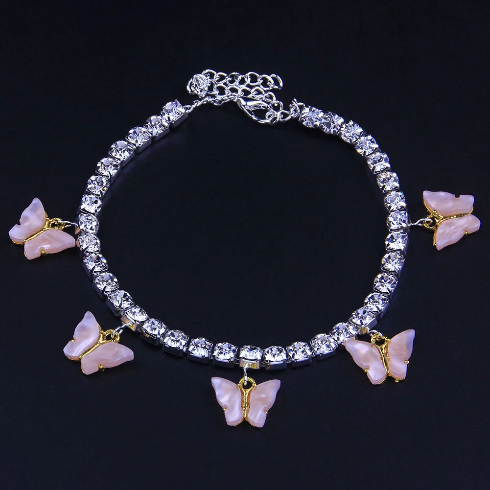 New Fashion Butterfly Charms Anklets For Women Summer Beach Ankle Bracelet Adjustable Rhinestones Ankle Chain Accessories Gifts