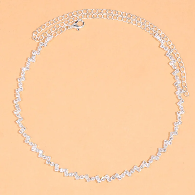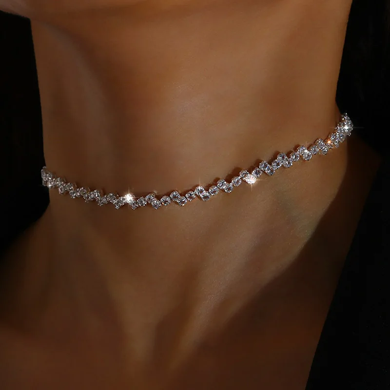 Stonefans Fashion Rhinestone Wave Necklace High Quality Jewelry for Women Simple Tennis Chain Necklace Choker Accessories Gift