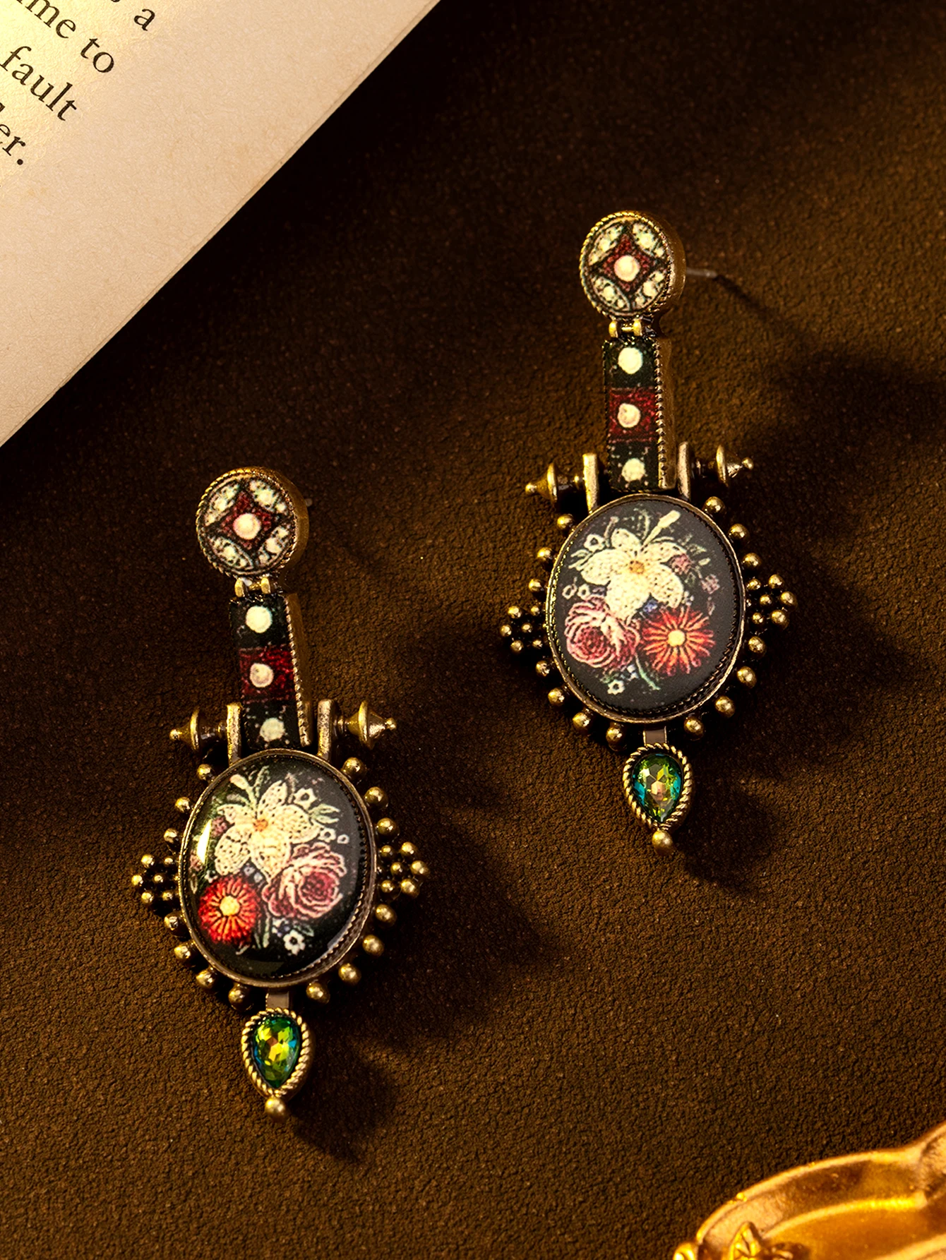 Vintage Flowers Fashion Niche Cute Medieval Pattern Design Romantic Floral Earrings