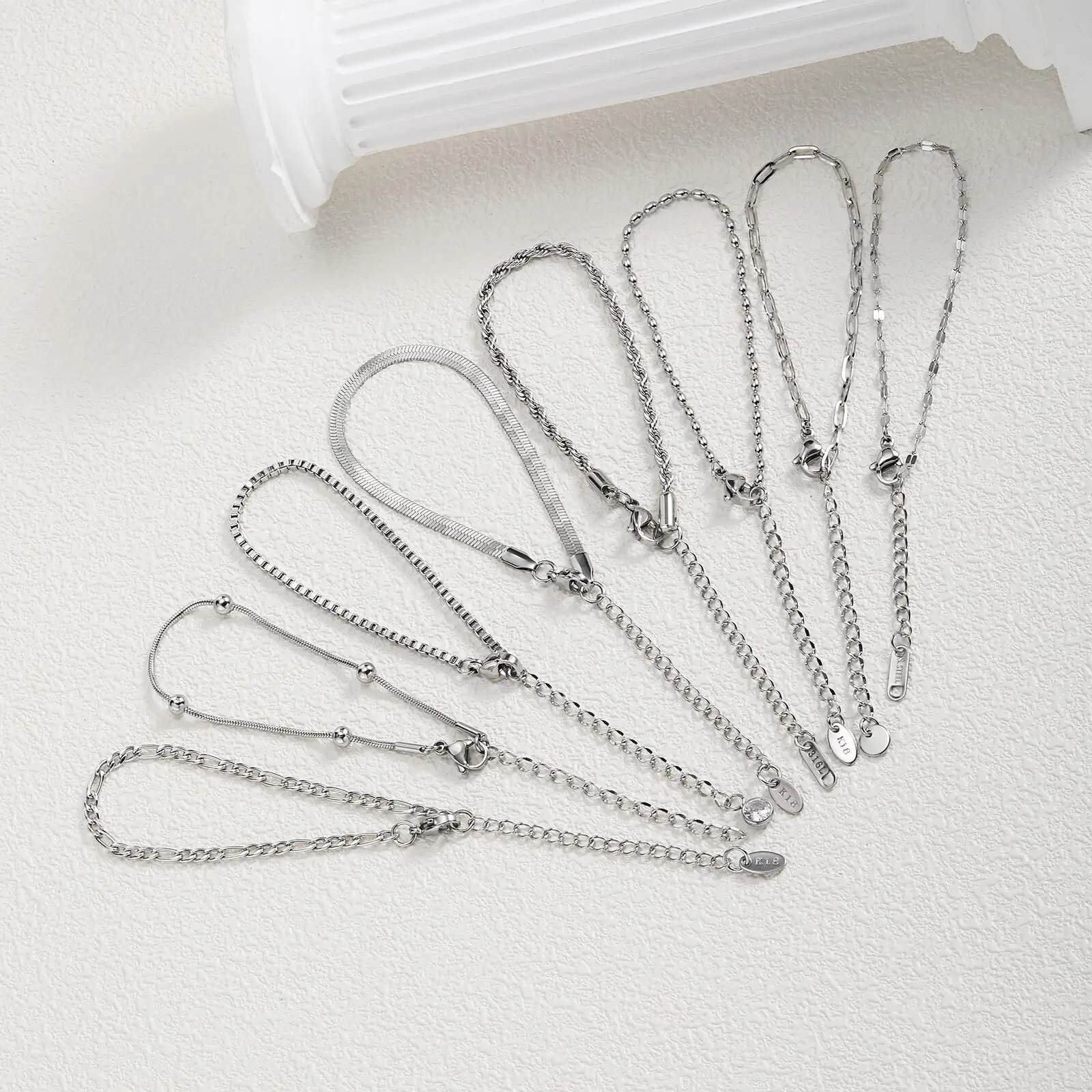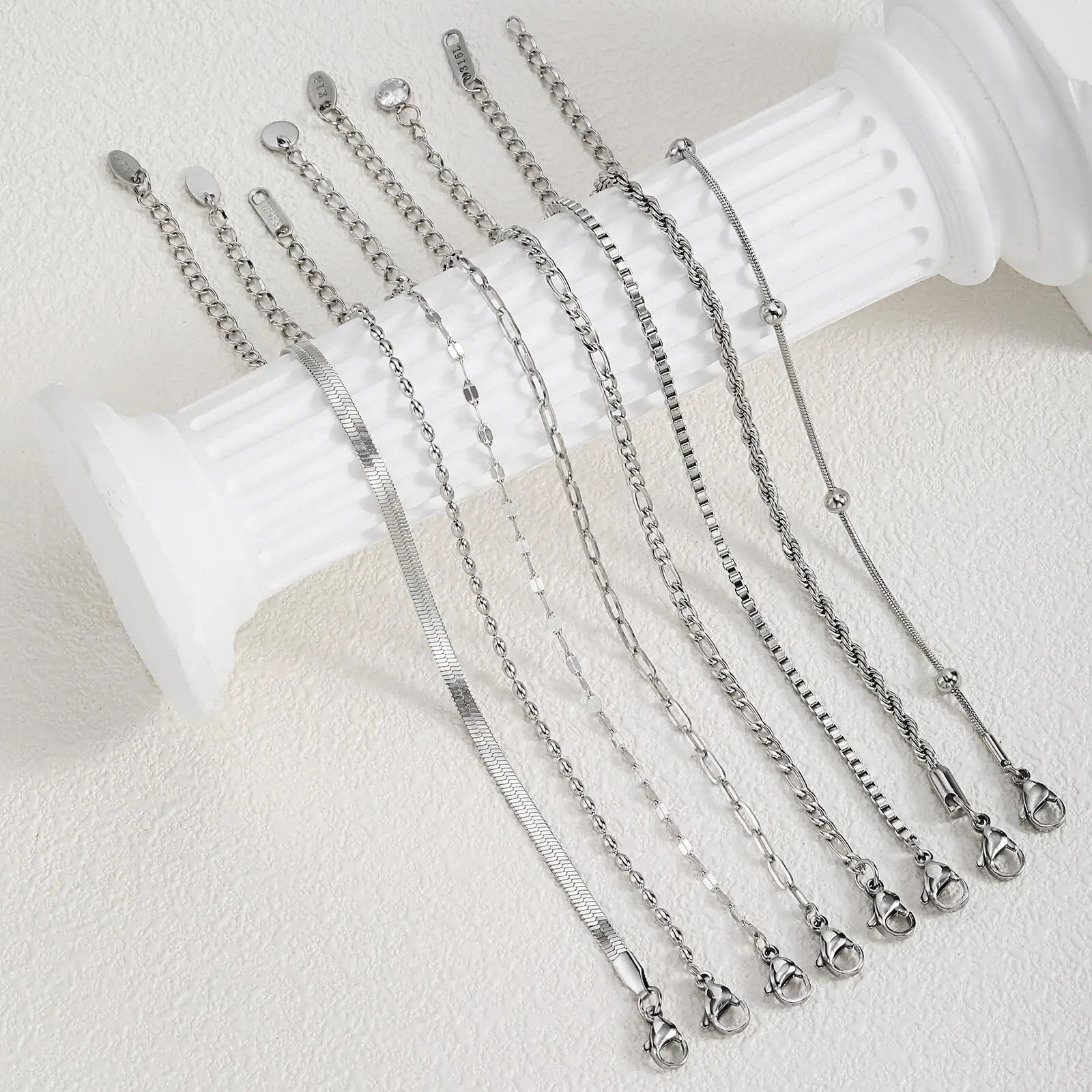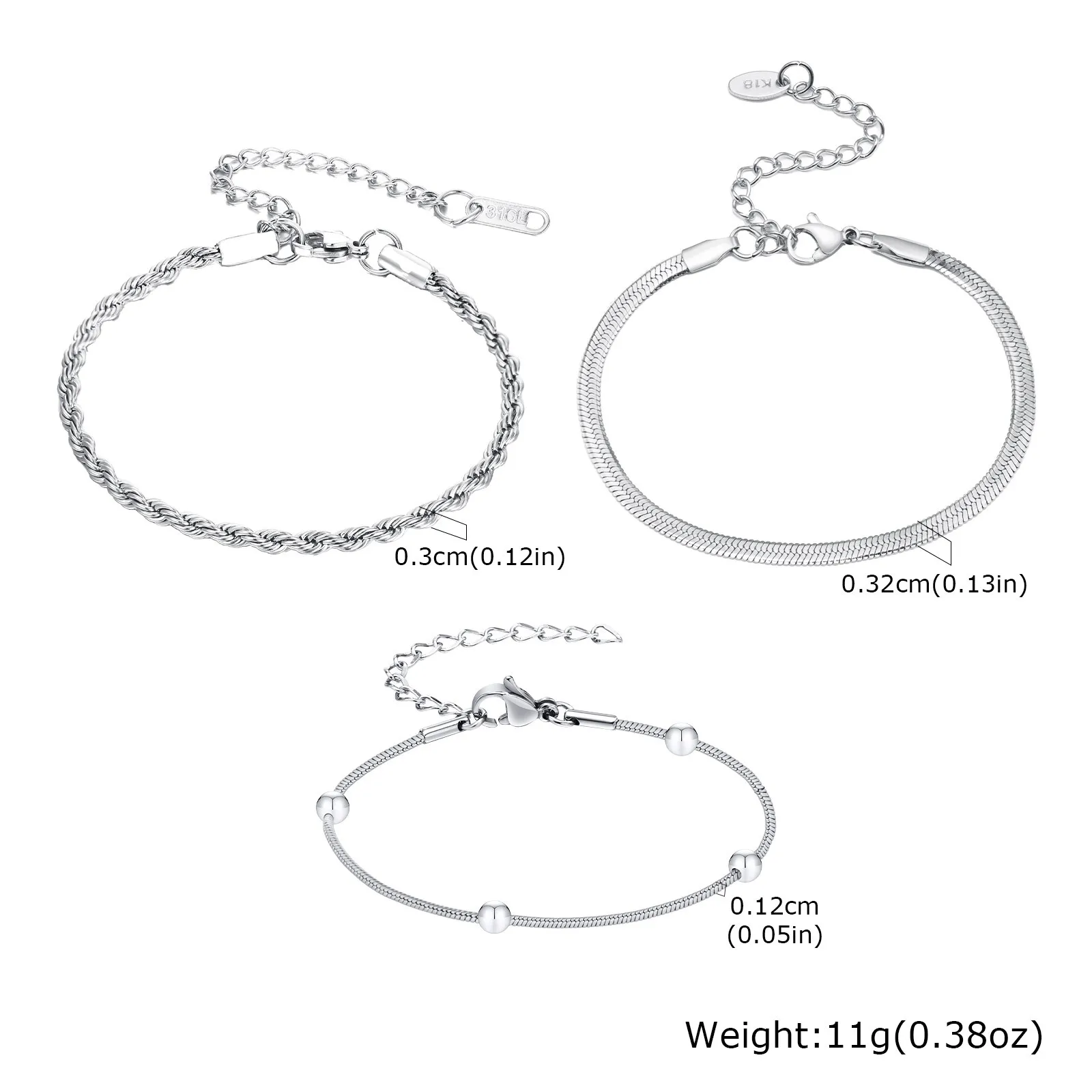 Women Chain Bracelet Silver Color, Stainless Steel Link Stackable Bracelets, Layered Fashion Accessories Gifts
